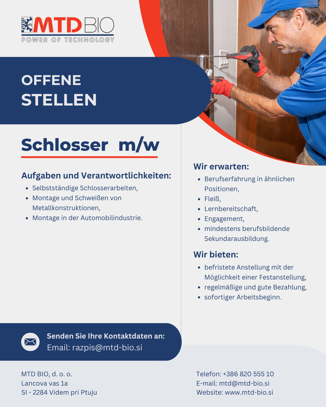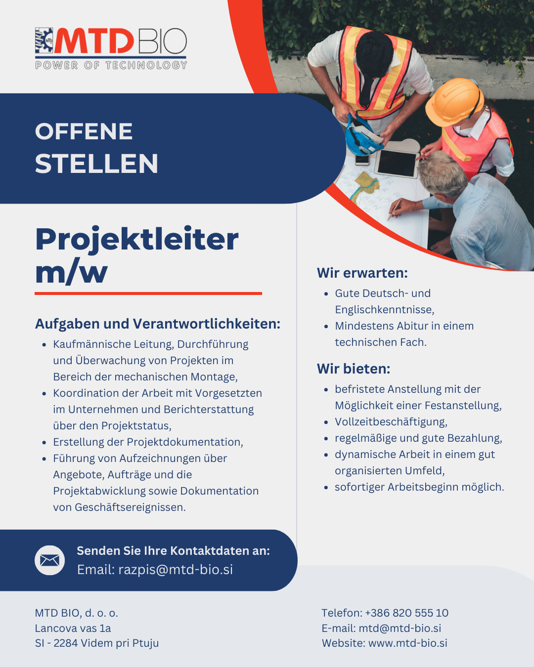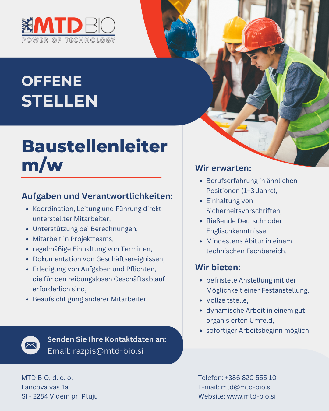 Wenn Sie an einer langfristigen Zusammenarbeit interessiert sind und Ihre Erfahrung in ein Unternehmen einbringen möchten, das auf Qualität, Partnerschaft und neue Technologien setzt, senden Sie uns bitte Ihre Kontaktdaten an die unten angegebene E-Mail-Adresse.