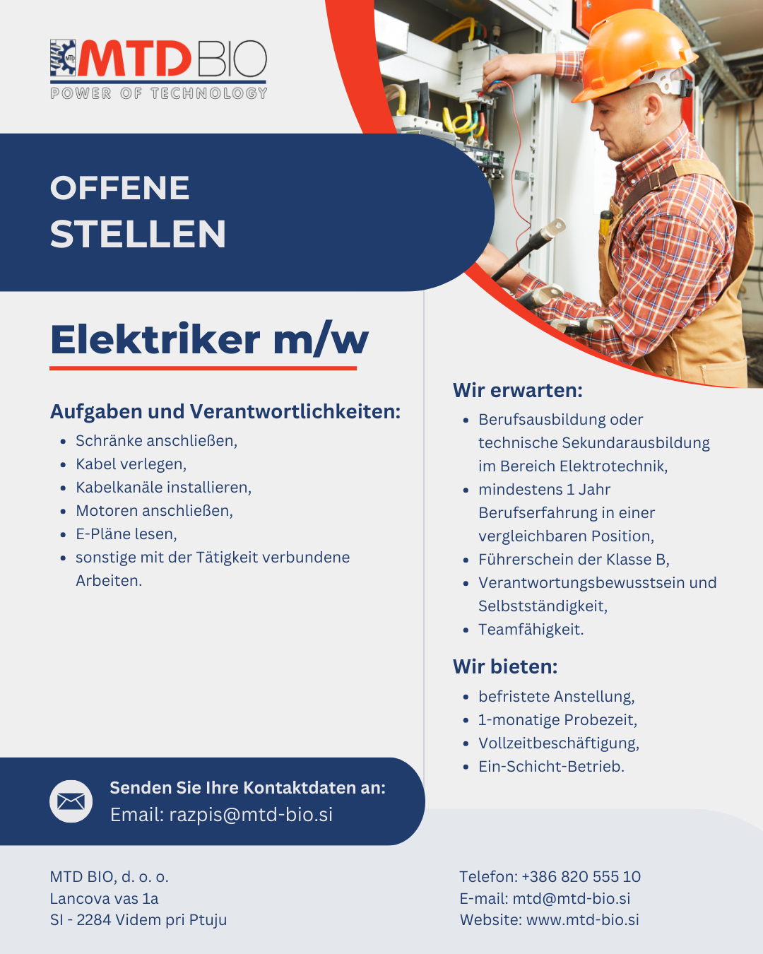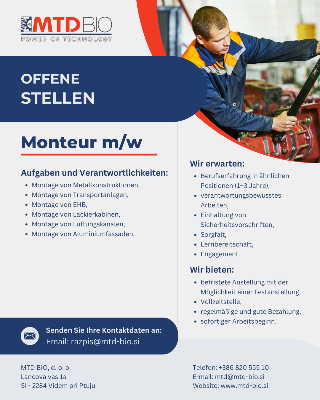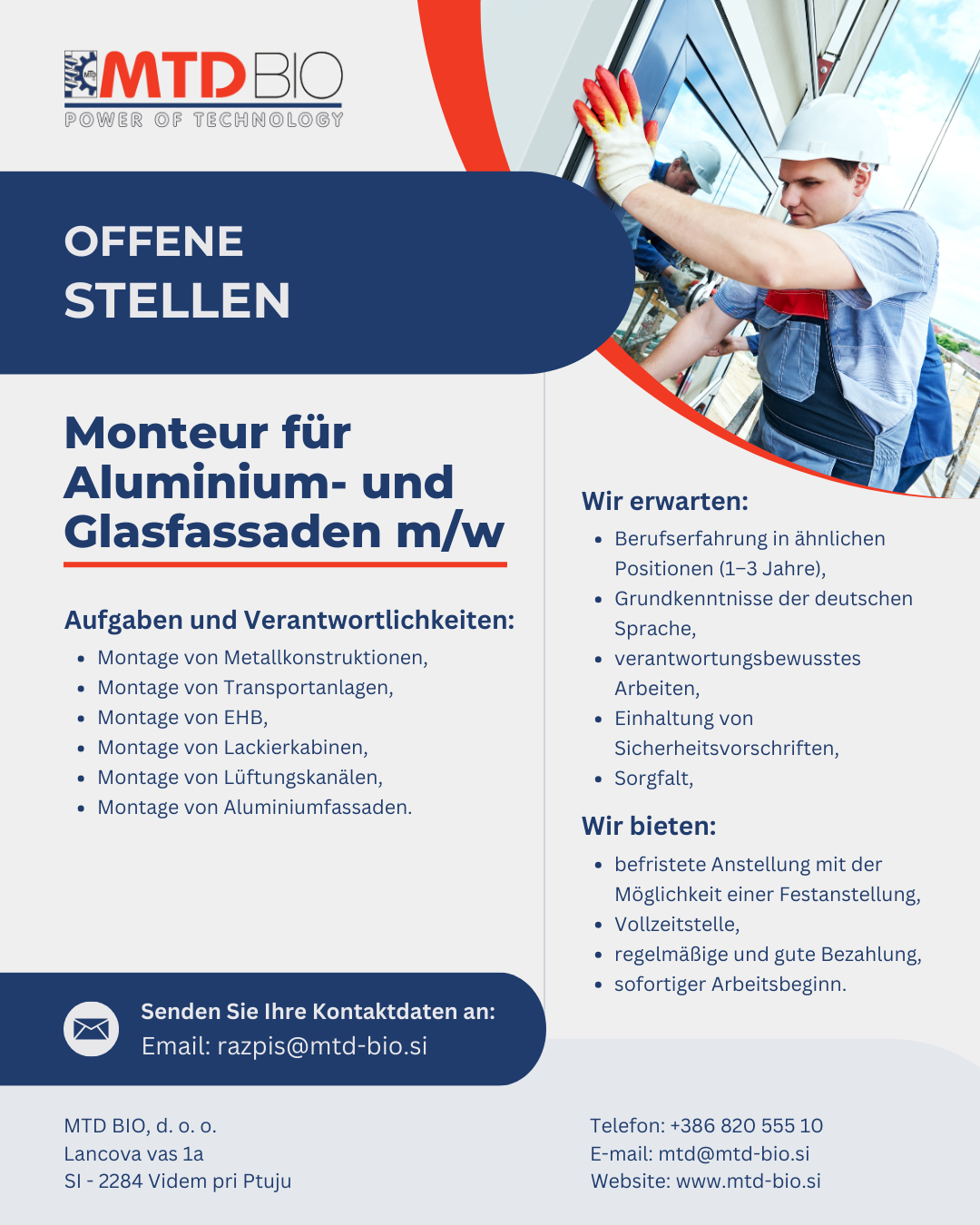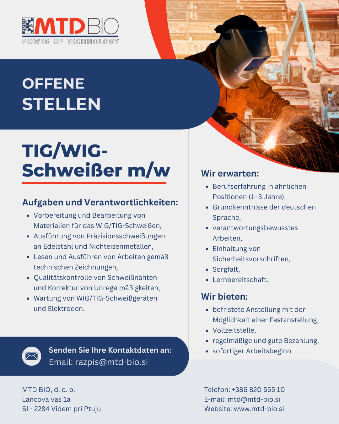 Wenn Sie an einer langfristigen Zusammenarbeit interessiert sind und Ihre Erfahrung in ein Unternehmen einbringen möchten, das auf Qualität, Partnerschaft und neue Technologien setzt, senden Sie uns bitte Ihre Kontaktdaten an die unten angegebene E-Mail-Adresse.