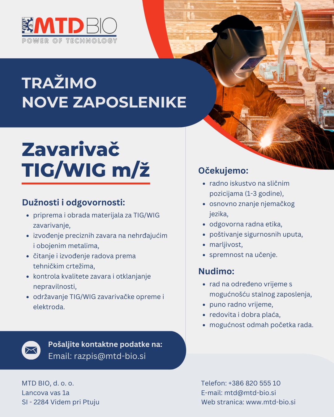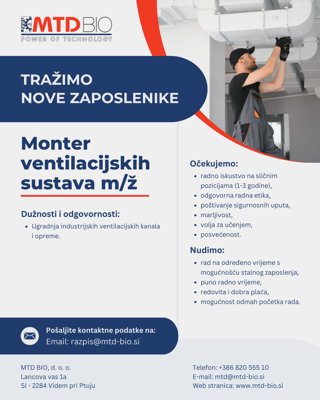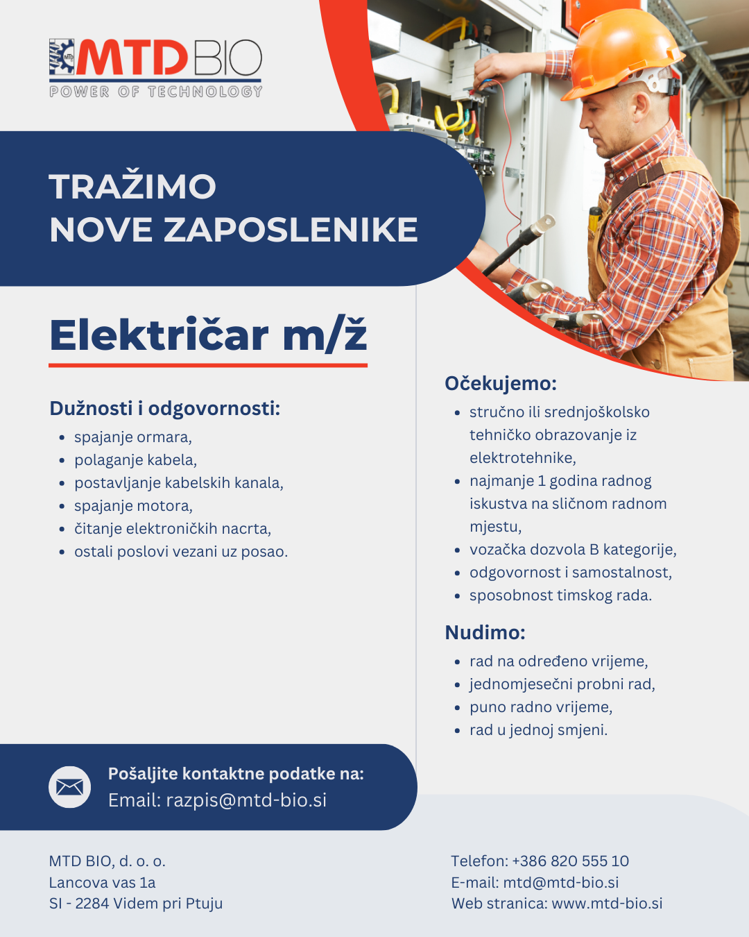 Ako tražite dugoročnu suradnju i prepoznali ste pravu priliku te želite svojim iskustvom doprinijeti još učinkovitijem radu tvrtke koja se temelji na dobrim odnosima, kvaliteti i ulaganju u nove tehnologije, pozivamo vas da nam pošaljete svoje kontakt podatke na e-mail adresu navedenu u nastavku.